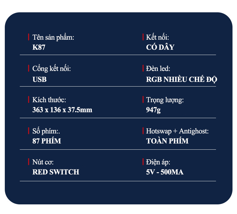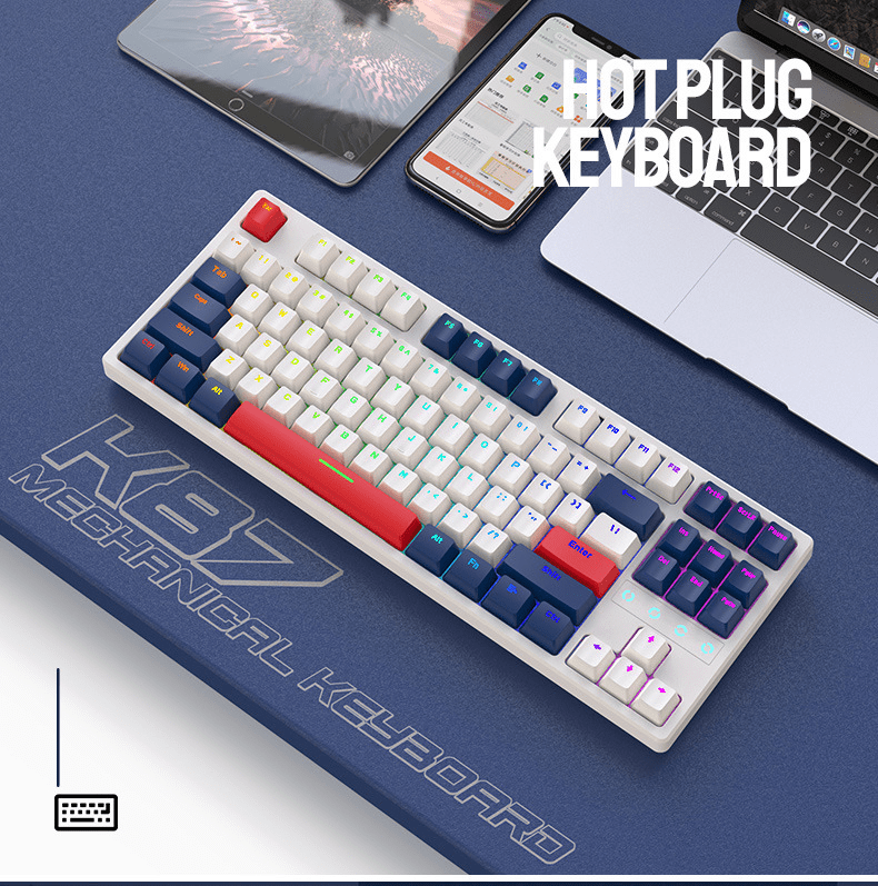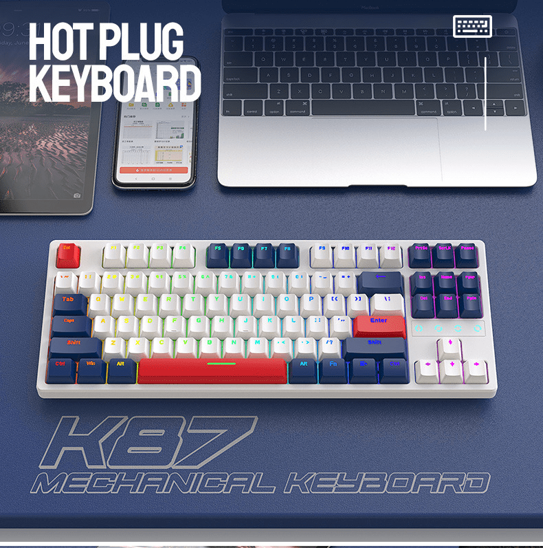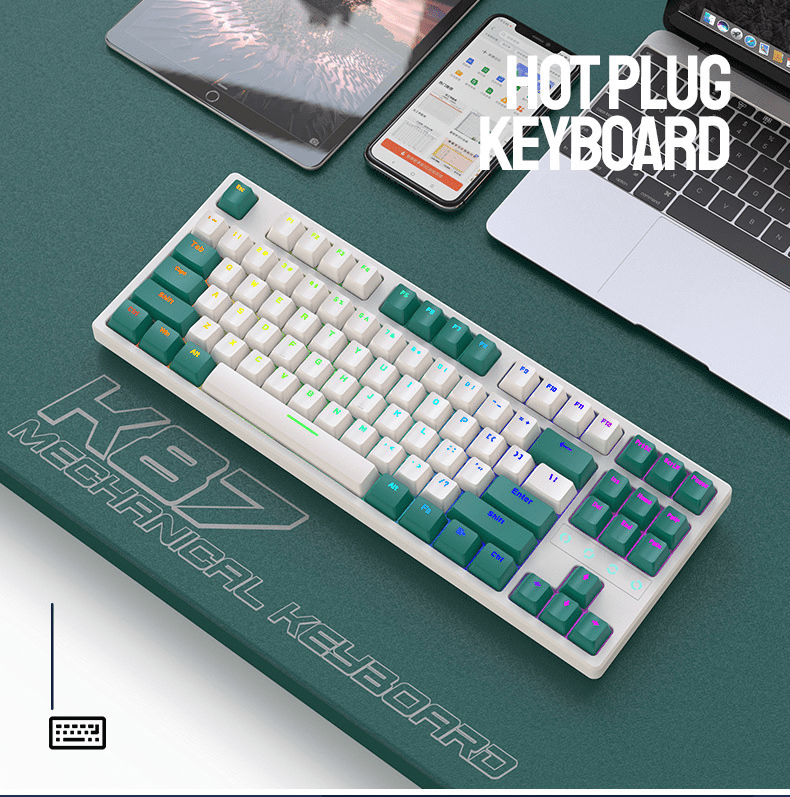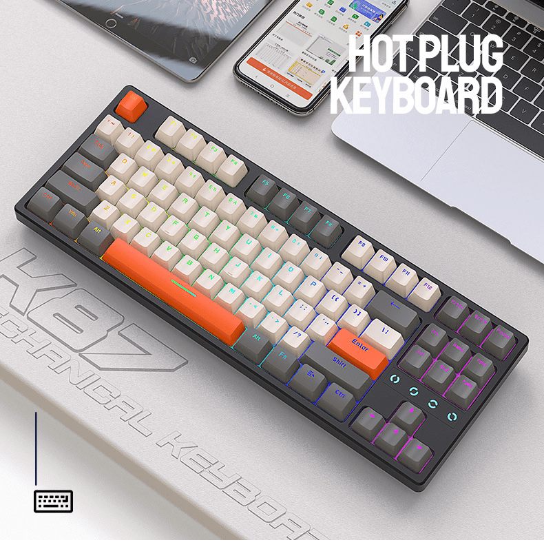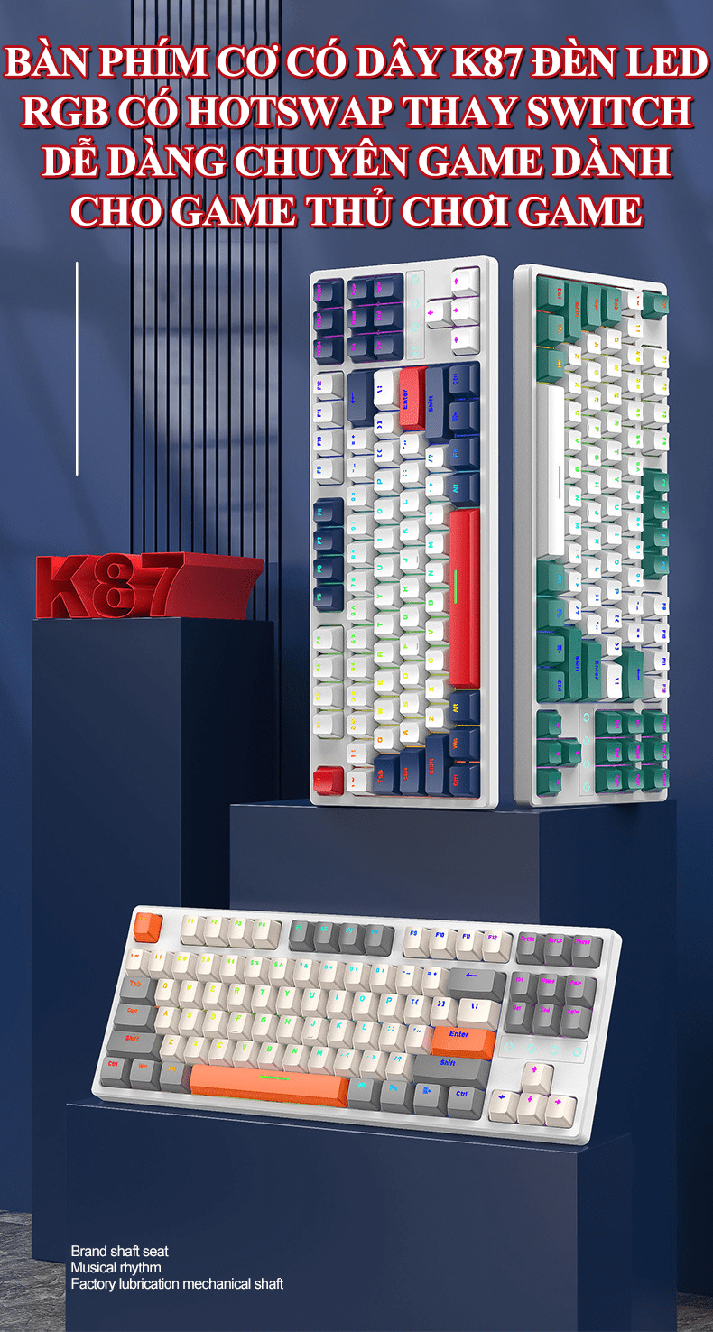 Bàn phím cơ KHÔNG DÂY K87 kết nối 3 chế độ với thiết kế TKL 87 phím có đèn led RGB 22 chế độ cực đẹp và có hotswap thay switch dễ dàng