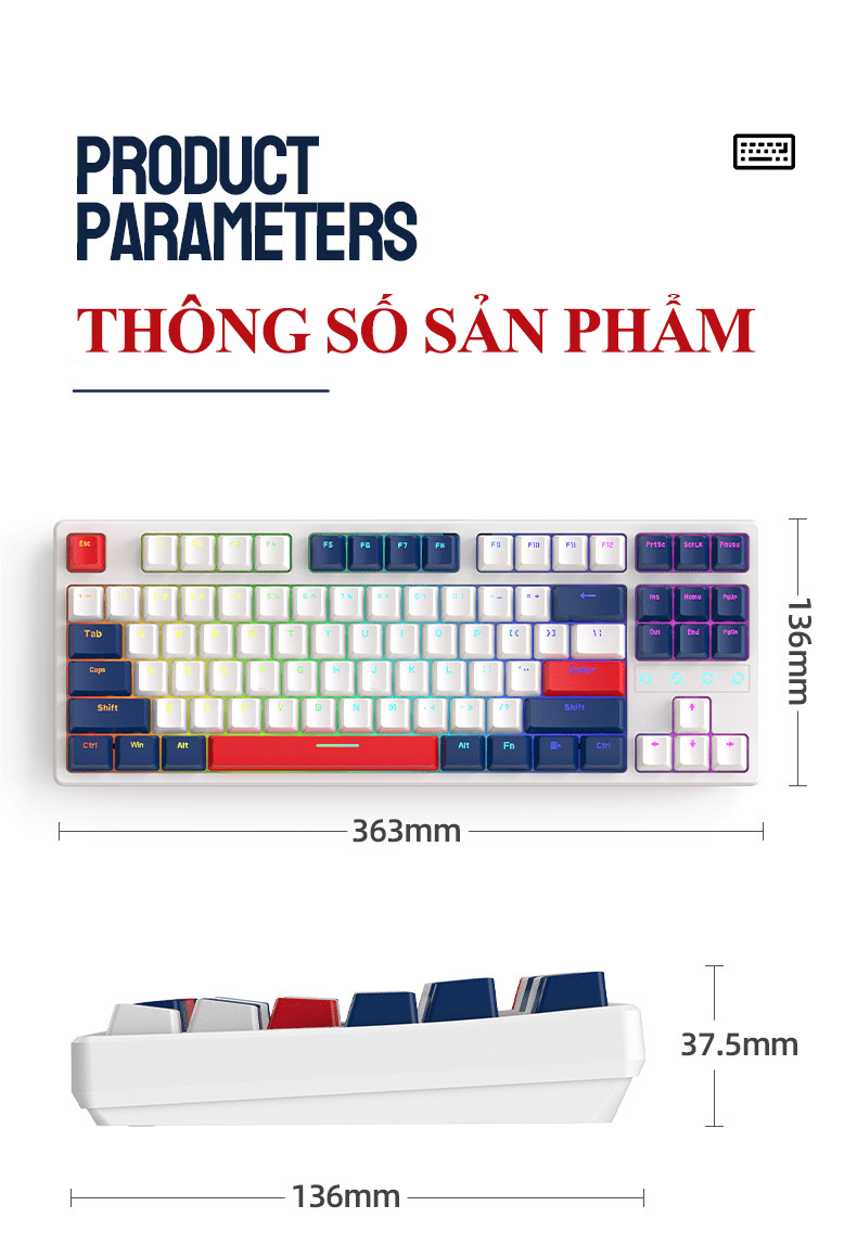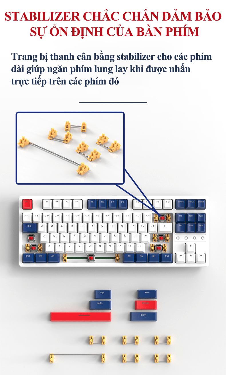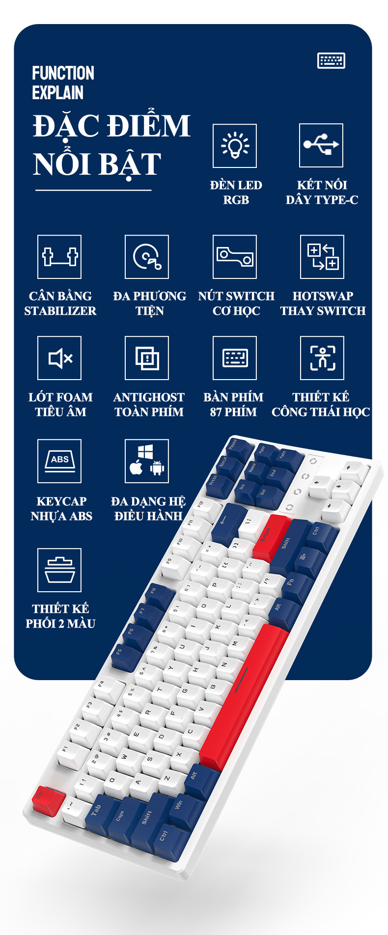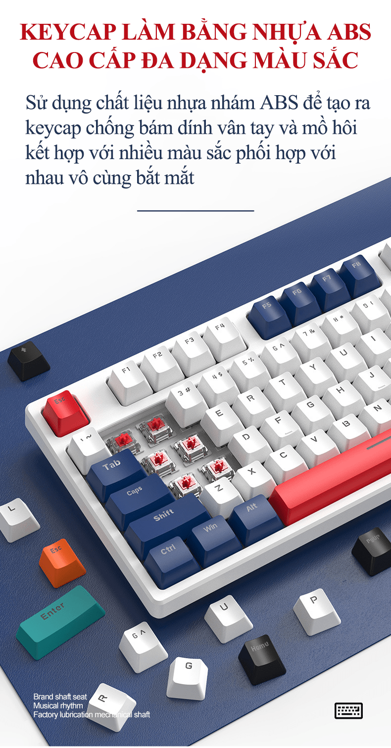 • Chất liệu phím nhựa ABS Double-shot không tróc sơn theo thời gian.
