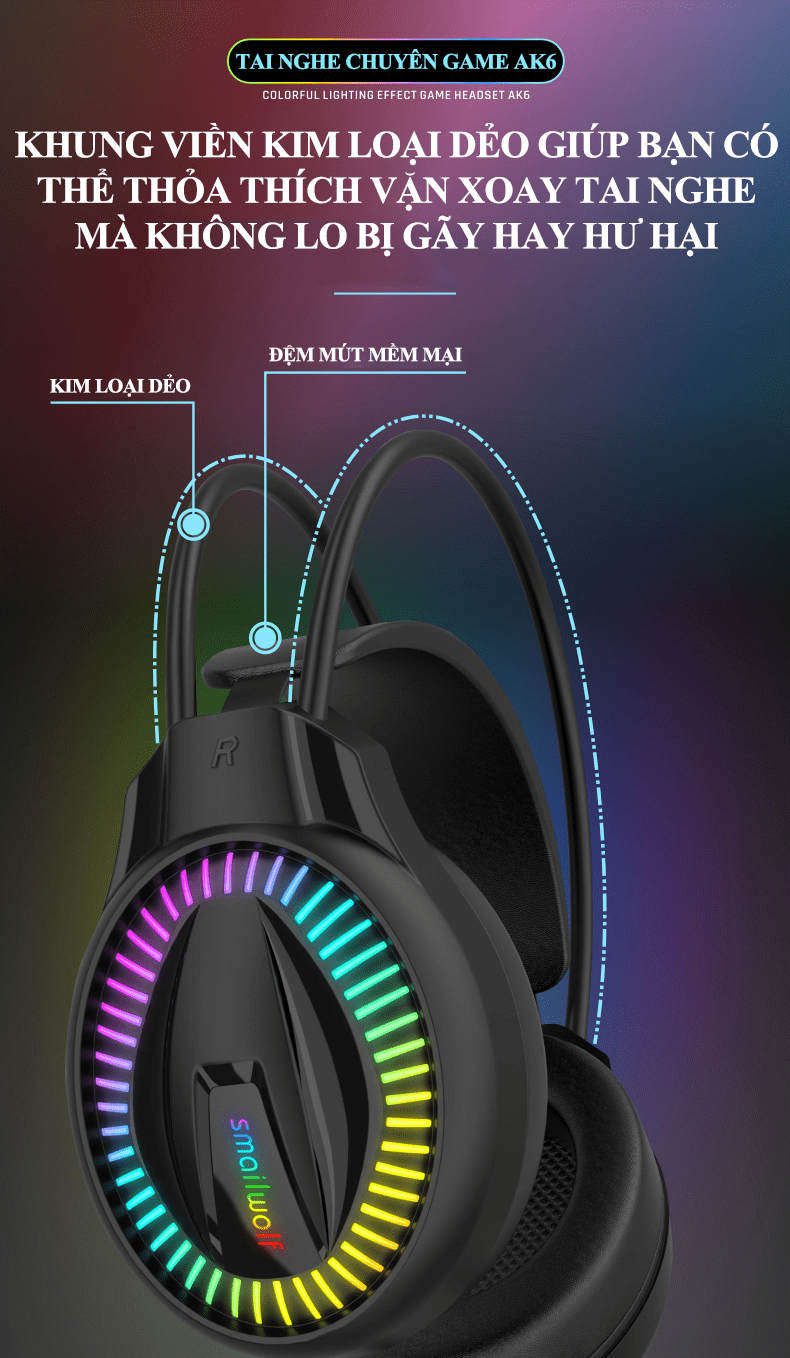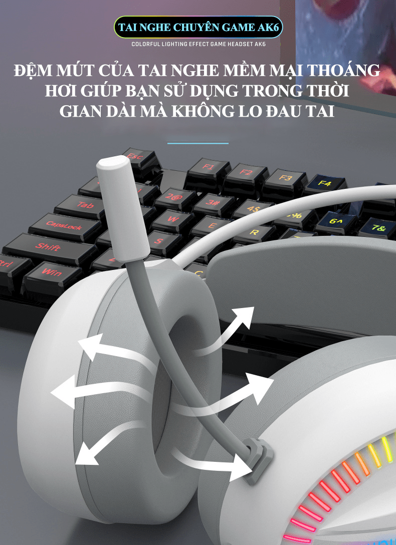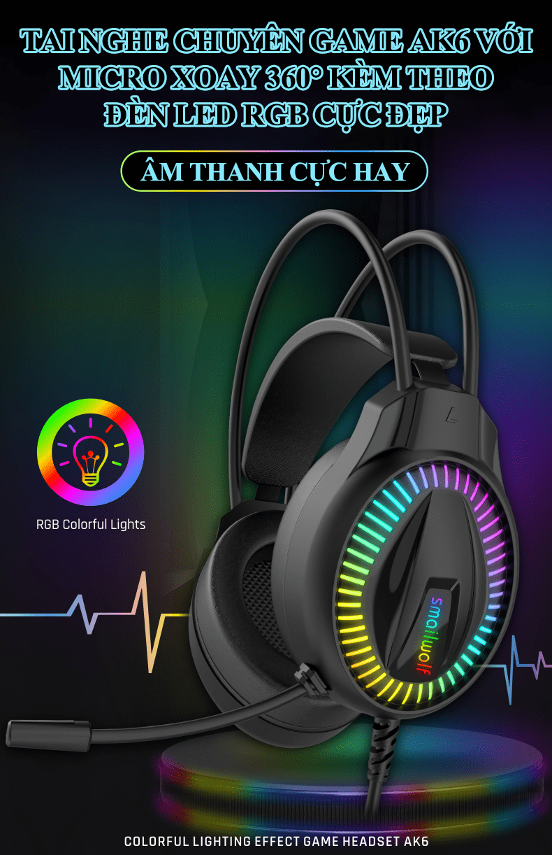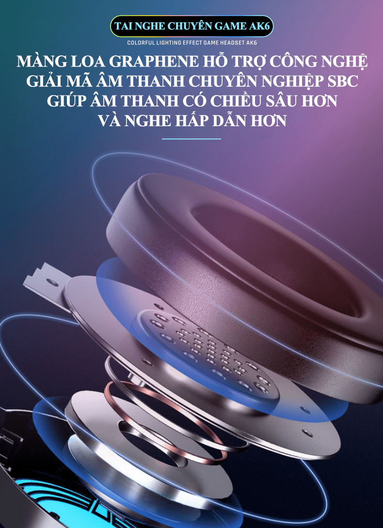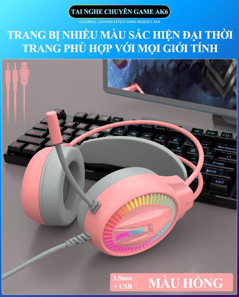 Tai nghe chuyên game AK6 kết nối có dây bằng cổng 3.5mm + USB có micro xoay 360° với đèn led RGB cực đẹp