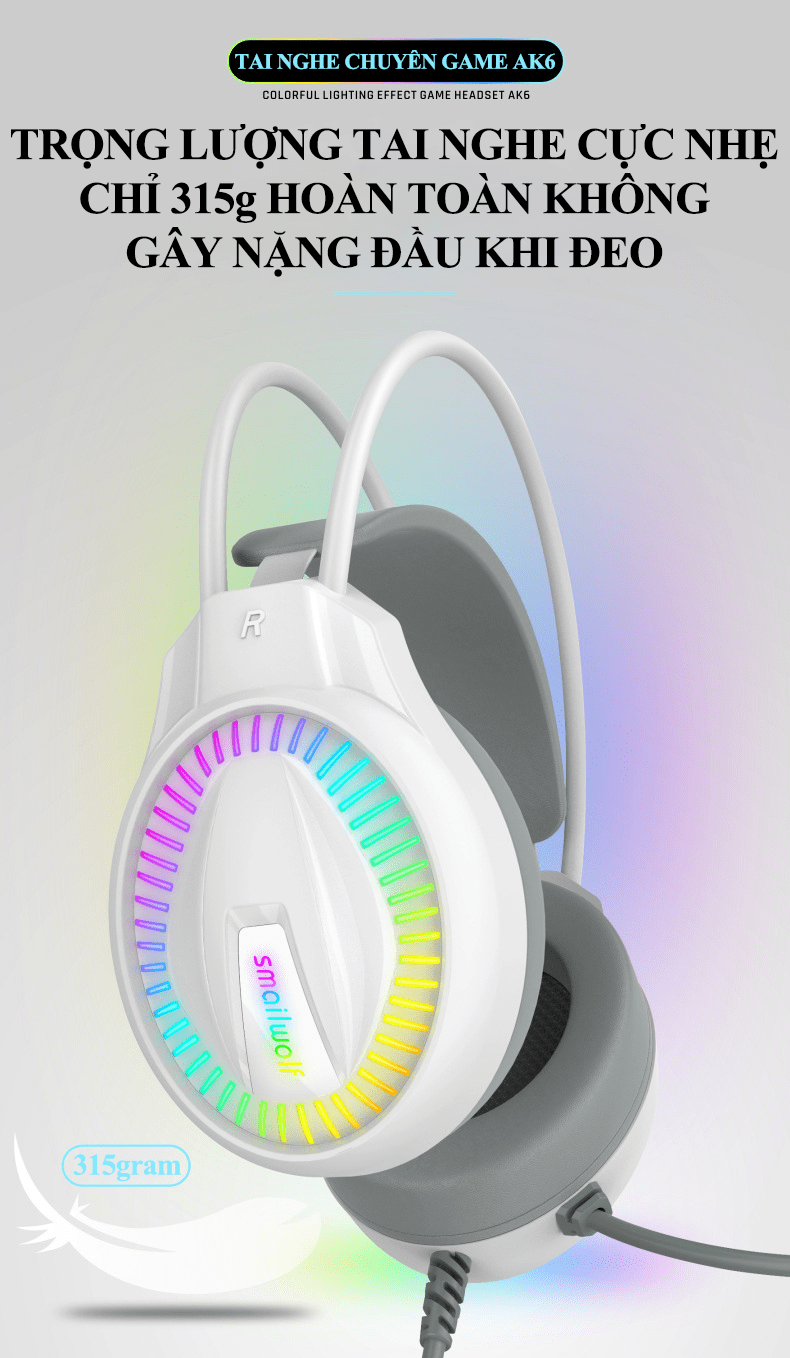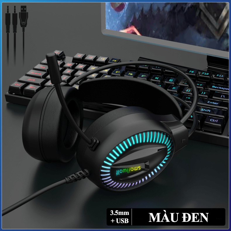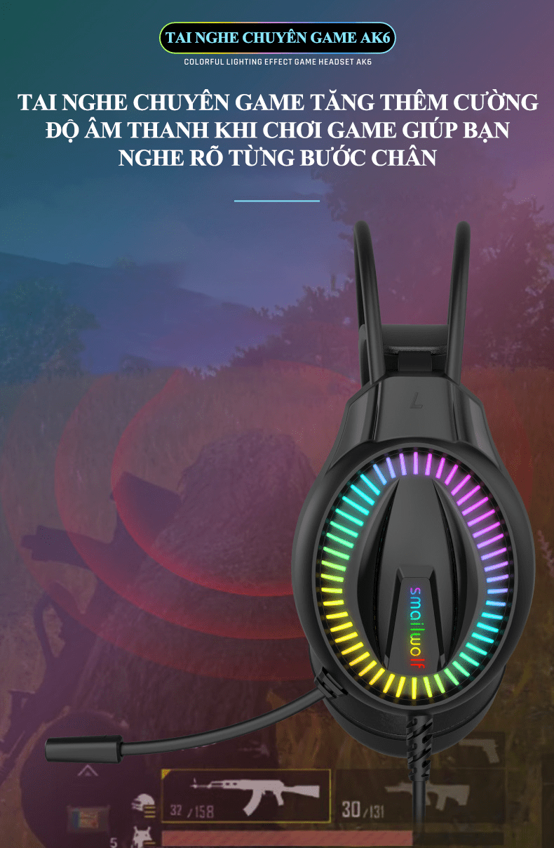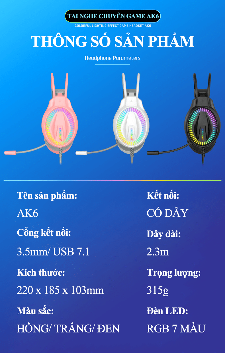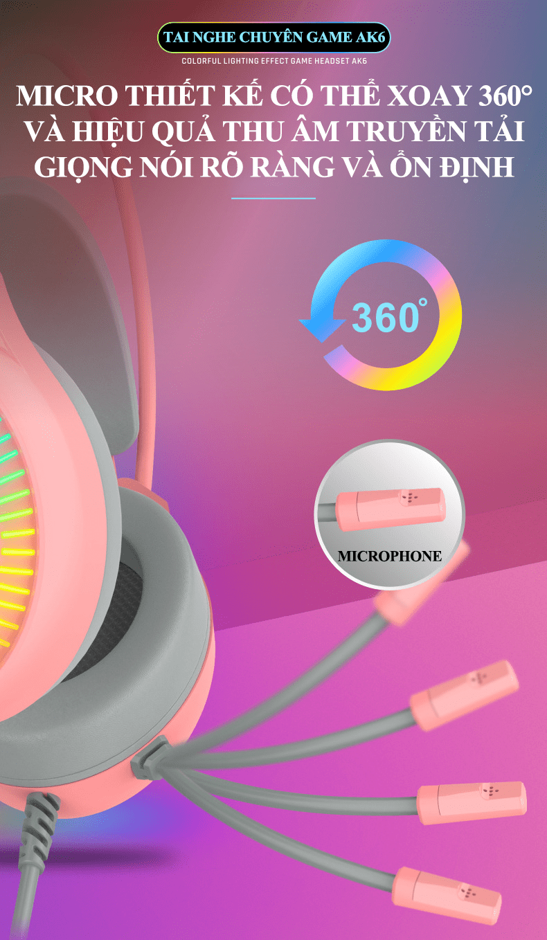 Tai nghe chuyên game AK6 kết nối có dây bằng cổng 3.5mm + USB có micro xoay 360° với đèn led RGB cực đẹp